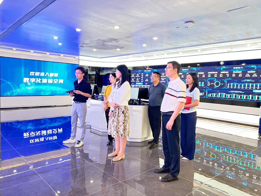 在翰智集团校企合作负责人张树烨经理的陪同下,教师们首先参观了集团总部的智慧办公区,然后在数字化体验空间了解了翰智的数字化业务单元和翰智数科教育云,张经理同步介绍了翰智的实践教学智慧平台、数字教学资源开发、校企合作教材开发、师资培训、技能竞赛等服务。