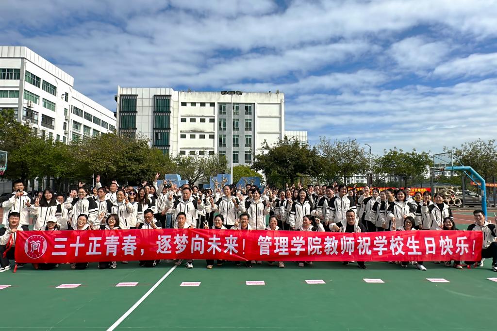在开幕之前,管理学院的老师们齐聚校园,为学校30周年校庆即将启幕之际,以最洪亮的嗓音、最真挚的情怀,拉起主题横幅,为母校送上最热烈的生日祝福。