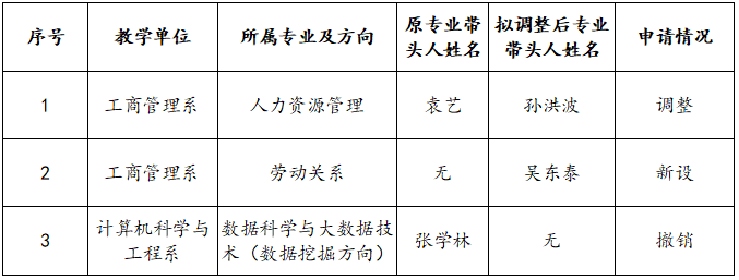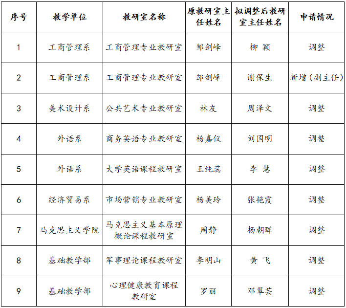经教学单位推荐、教务处形式审查,呈报院长办公会审定,现将本次调整结果予以公示。