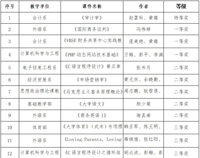 附件:第四届优秀多媒体教学课件评比活动评审结果(同等级排名不分先后)