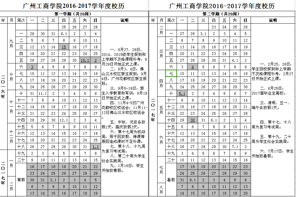 2016-2017学年度校历