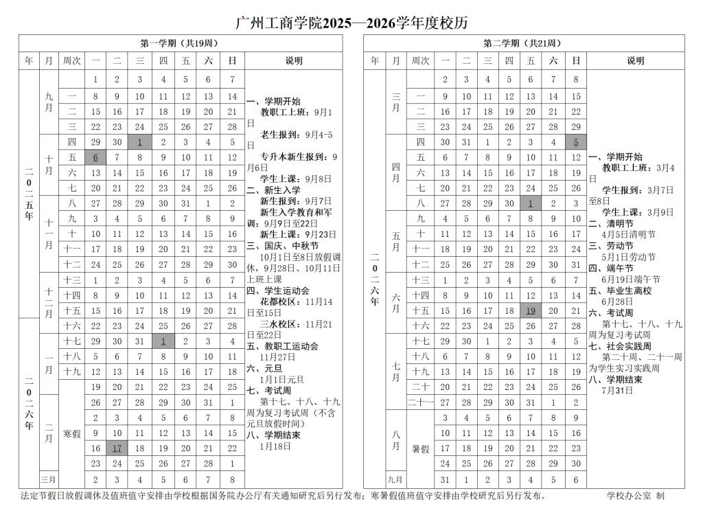 【beat365在线体育官网登录入口2025-2026学年度校历】