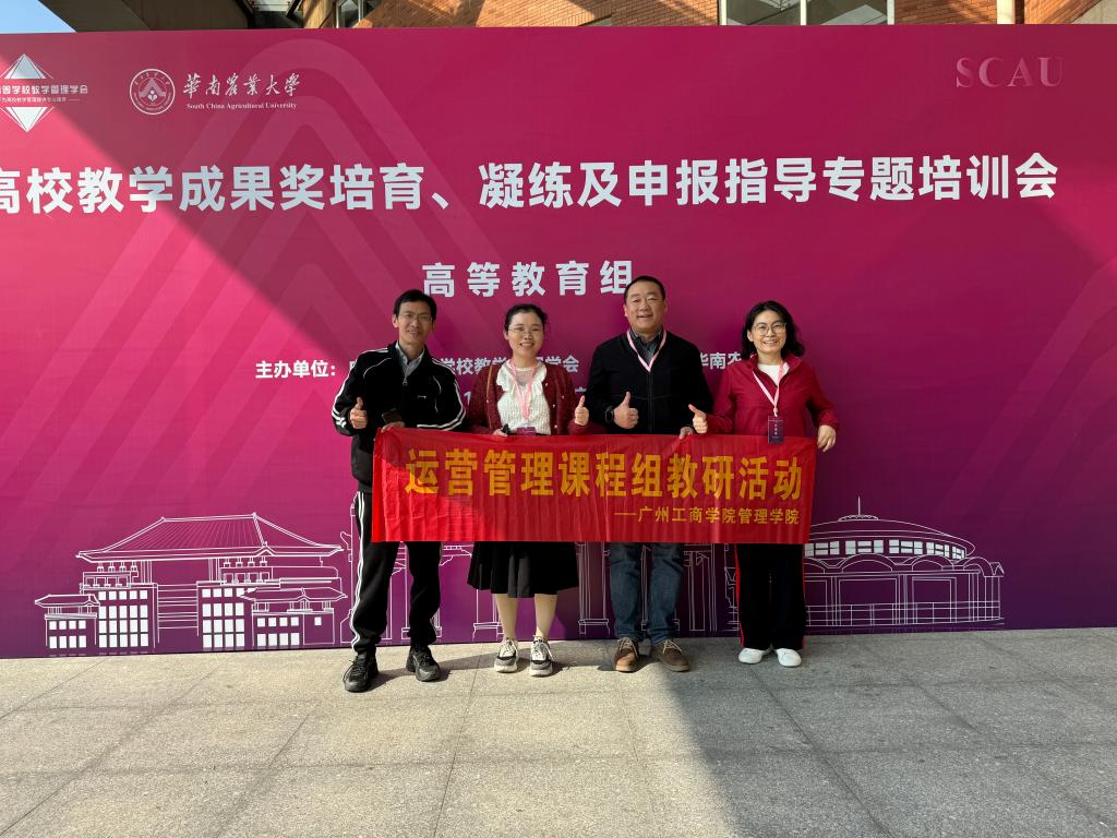 【本网讯】2024年12月7-8日,《运营管理》课程教研室负责人柳颖副教授,参加了广东省高等学校教学管理学会主办华南农业大学承办的“关于开展高校教学成果奖培育、凝练及申报指导专题培训会”。教学成果奖是高校教学领域最重要的奖项之一,本次培训为教师掌握教学改革实践的归纳、总结、凝练与申报规范,学习教学成果奖的申报、成果转化经验,全面提升教学改革与教学研究综合能力,进一步推进教学成果奖申报质量,有很大的帮助。《运营管理》课程,作为学校一流本科课程,校级运营管理教研室项目,计划在2025年初申报校级教学成果奖,本次的培训犹如及时雨般恰到好处。