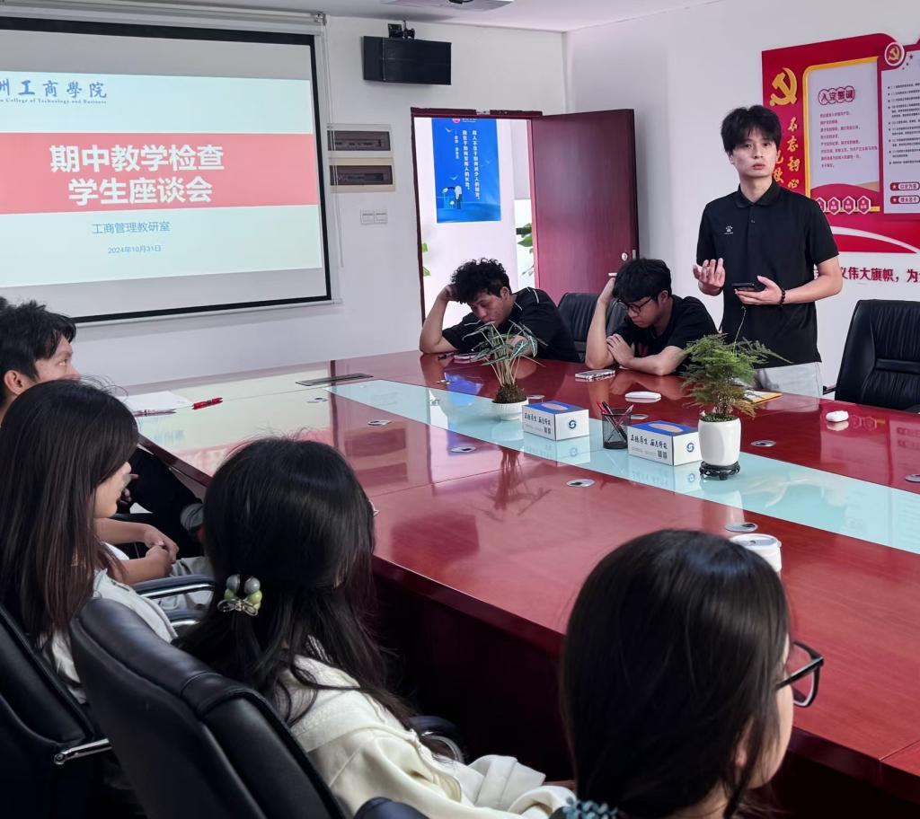 【本网讯】2024年10月31日,一场别开生面的期中教学检查学生座谈会在院部楼624室成功举办。此次会议由工商管理教研室主任单丽薇教授与副主任韩剑义副教授携手主持,旨在通过面对面的交流方式,深入了解学生在课程学习过程中遇到的问题和需求,从而进一步优化教学内容和方法,全面促进教学质量的提升。