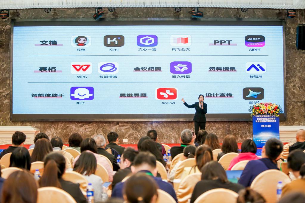 【本网讯】2025年3月22日,广东省高等学校教学管理学会在广州市南洋长胜国际会议中心举办了DeepSeek-AI智能体赋能高校教学及管理创新专题培训会(第二期)。此次培训以“教育新机遇:AI点亮教学及管理创新之路”为主题,旨在通过AI技术的深度应用,为高校教学与管理带来全新的变革。