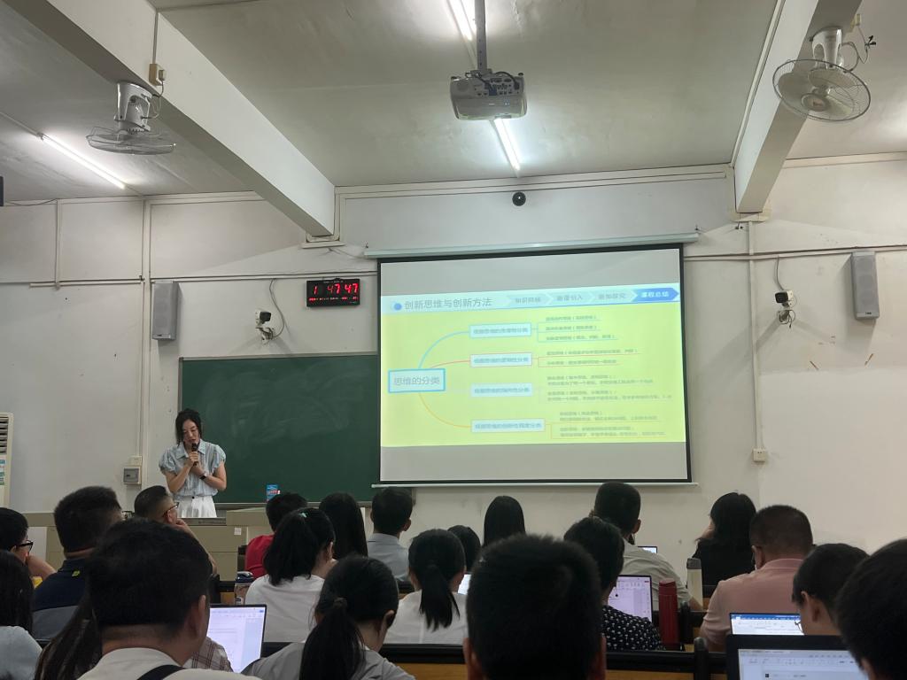 课堂上,李燕老师以生动有趣的实验导入课程,瞬间激发起大家的兴趣。在讲解“1.1思维的概念、分类;创新的概念、类型、基本观点、基本特点”等内容时,她借助丰富的PPT动画,将抽象的知识具象化,让复杂的概念变得通俗易懂。