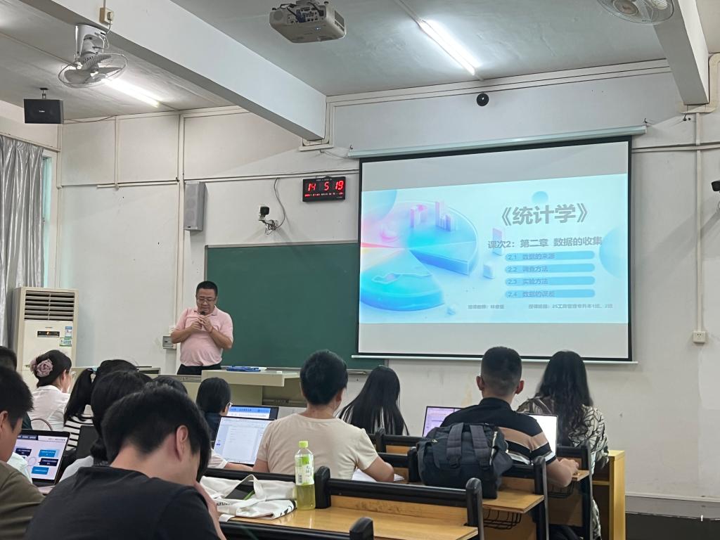 课堂上,林老师以清晰的逻辑和生动的讲解,开启了《统计学》第二章“数据的收集”的教学。他先通过课程回顾,带领大家温习了统计学导论中统计及其应用领域、统计数据的类型、统计基本概念等内容,帮助学生巩固旧知,为新课学习做好铺垫。在讲授“数据的收集”相关内容时,林老师结合实际案例,如以“海底捞”开展服务满意度调查为例,引导大家思考数据获取的方式与渠道。他详细讲解了数据的来源,包括间接来源和直接来源,还对调查方法、实验方法等进行了深入剖析,让抽象的统计学知识变得通俗易懂。