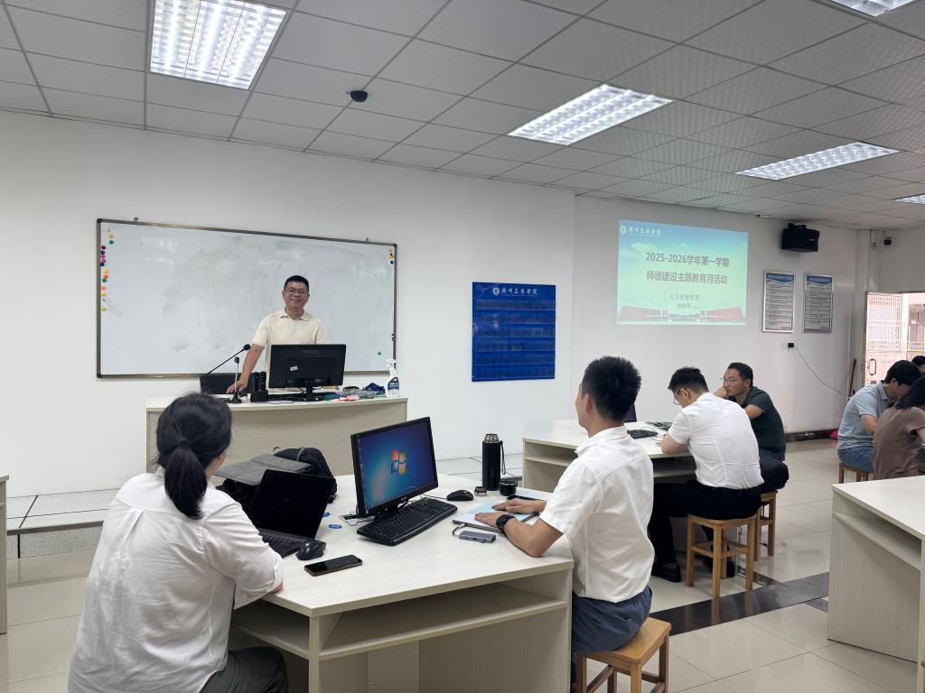 【本网讯】2025年10月9日下午2点,管理学院人力资源管理教研室在三水校区第二实验楼A305室召开了关于师德建设主题教育月活动的会议。会议由人力资源管理教研室副主任吴泽雄主持,人力资源管理教研室教师参加了此次会议。