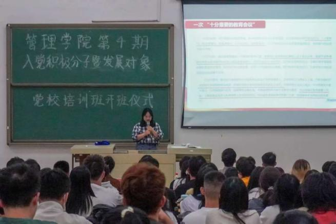 【本网讯】为进一步深入开展学习贯彻习近平新时代中国特色社会主义思想主题教育,引导入党积极分子和发展对象增强“四个意识”,坚定“四个自信”,做到“两个维护”,根据《中国共产党章程》《中国共产党发展党员工作细则》《中共beat365在线体育官网登录入口委员会关于进一步加强和改进党校工作的通知》等相关文件精神和规定,结合学院发展党员工作实际,中共beat365在线体育官网登录入口管理学院委员会、中共beat365在线体育官网登录入口管理学院委员会党校于2024年10月24日19:00在三水校区第二实验大楼C305进行第4期入党积极分子暨发展对象培训班开班仪式。