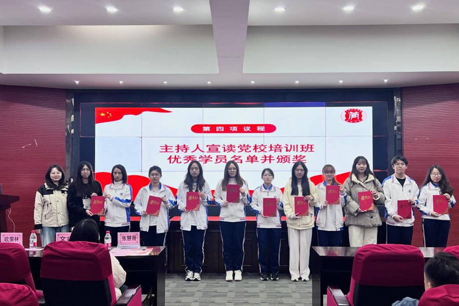 紧接着,大会进入到优秀学员的颁奖环节。主持人宣读了第6期党校培训班发展对象优秀学员和入党积极分子优秀学员名单,并由管理学院党委专职组织员文翊同志,以及管理学院党委统战委员欧荣林同志分别为优秀学员颁奖。