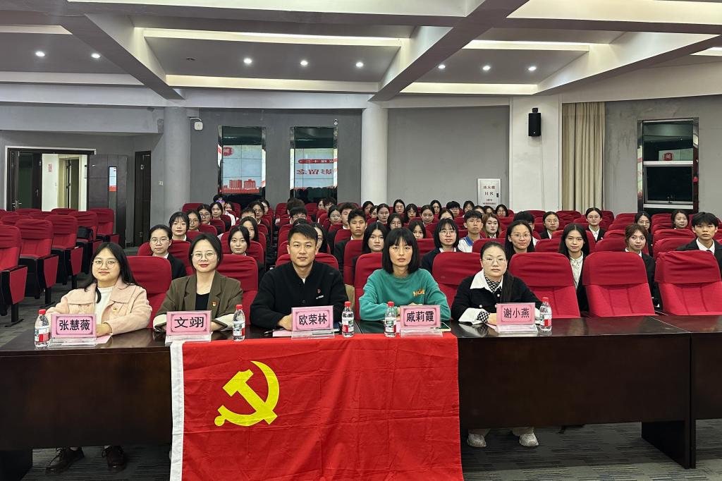 大会伊始,全体师生共同观看了管理学院第五届党群服务站年度工作回顾视频。随后,第五届站长刘彤怡同志对过去一年的工作进行总结,与大家一同重温了共同奋斗的点点滴滴。在党组织的引领下,党群服务站过“一月一观影”、“一日一故事”等活动筑牢思想根基;积极组织开展三江村植树、“三下乡”等服务实践活动,贴近群众需求;并借助宣传平台传播党群正能量。面对工作中的挑战,大家团结协作、共克难关,也在工作过程中收获了成长与情谊。刘彤怡同志向学院领导老师的悉心指导以及每一位成员的辛勤付出致以诚挚的感谢,并期待新一届成员能传承红色精神,在奉献与服务中续写更加绚烂的青春篇章。