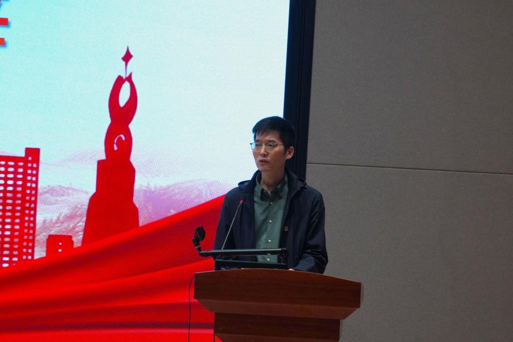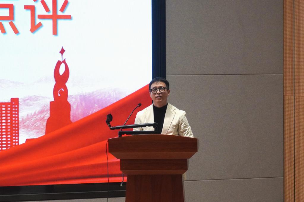 管理学院党委副书记赵小锋同志在发言中强调,“一日一故事”活动是学院党委深入学习贯彻党的二十大精神、落实“讲好中国故事”要求的重要举措。他介绍了活动已形成线上线下结合,涵盖红色人物、地标、党史三大主题的常态化学习机制,并通过“红脚印”平台及学院官网系统化传播,拓展了学习教育覆盖面。值此学校三十周年校庆之际,活动延伸至线下具有特殊意义。他号召师生从红色故事中汲取智慧力量,努力成长为有理想、敢担当、能吃苦、肯奋斗的新时代青年,为学校发展与民族复兴贡献力量。