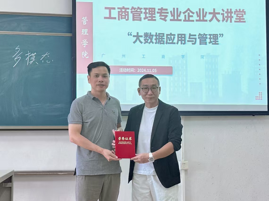 在本次讲座中,王保生老师代表管理学院向赵泛舟董事长颁发了企业导师聘书,感谢他为同学们带来的精彩分享和宝贵经验。此次企业大讲堂不仅加深了同学们对大数据应用与管理的理解,也为他们未来的职业发展指明了方向。