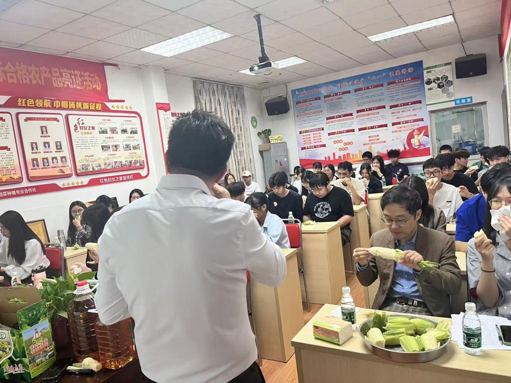 讲座期间,为使学生更好地体验生态农业产品,叶总精心准备了“白珍珠” 水果玉米,并带头与同学们一同品尝。大家在感受玉米甘甜的同时,也体会到了叶总历经创业艰辛后的幸福。同学们对水果玉米赞誉有加,纷纷表示希望下单,送给父母和亲人一同品尝这份美味。