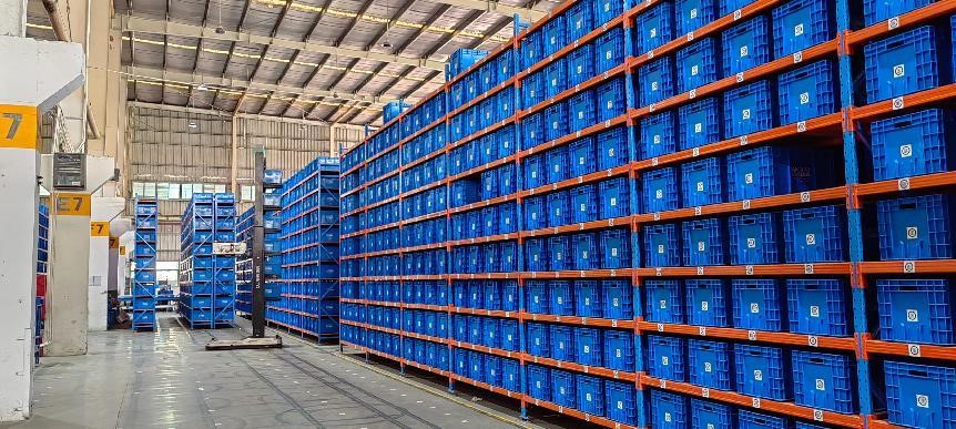 (同学们在骏都物流供应链领导的带领下参观智能化VMI仓库)
