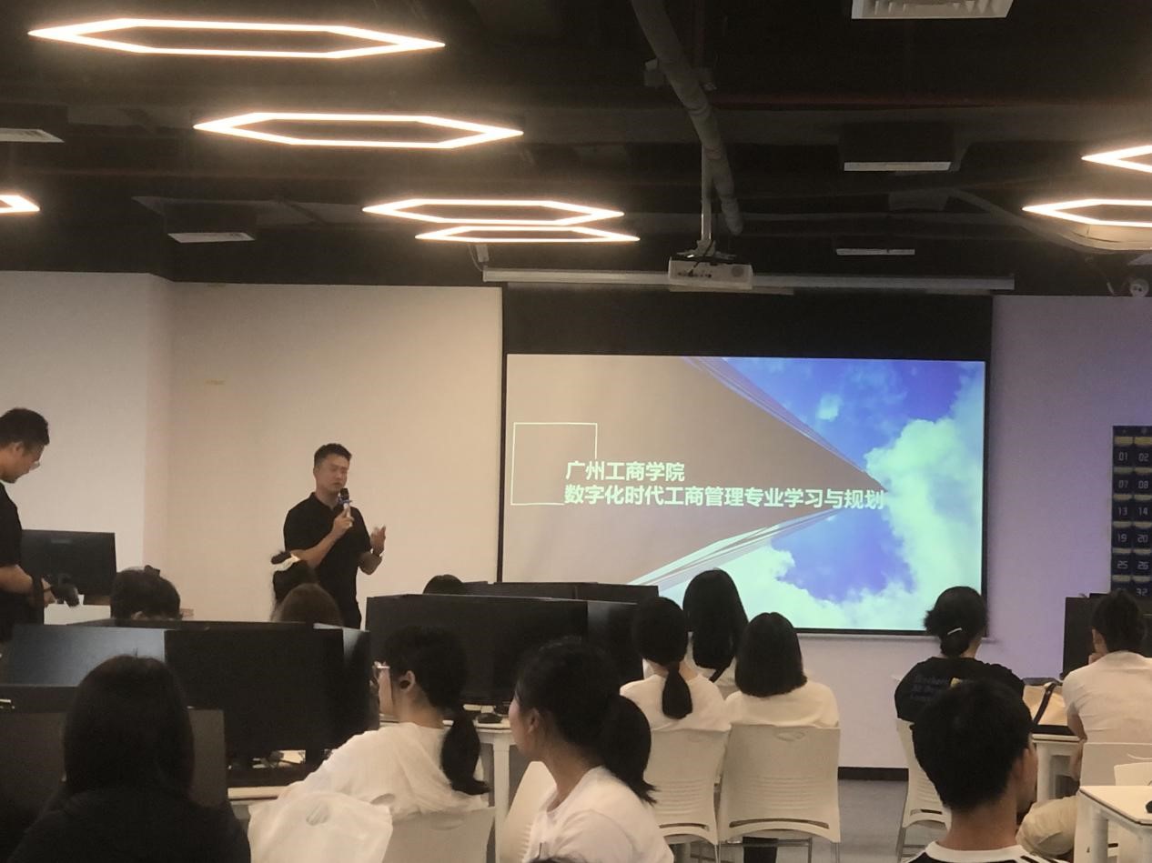 本次活动由广州工商管理专业郑冠辉老师带队,为工商管理专业学生学习注入了新的活力。实践随行的57位同学,高涨的热情和求知实践的兴趣充分体现了学生对数字化人才的关注和学习的热情!CDA数据分析华南授权中心总经理赖燕清老师借助其长期推动中国数字化人才的培养与发展的工作背景,其丰富的行业经验与前瞻性的视野,现场也为同学们带来了一场《数字化时代工商管理专业学习与规划》的讲座。