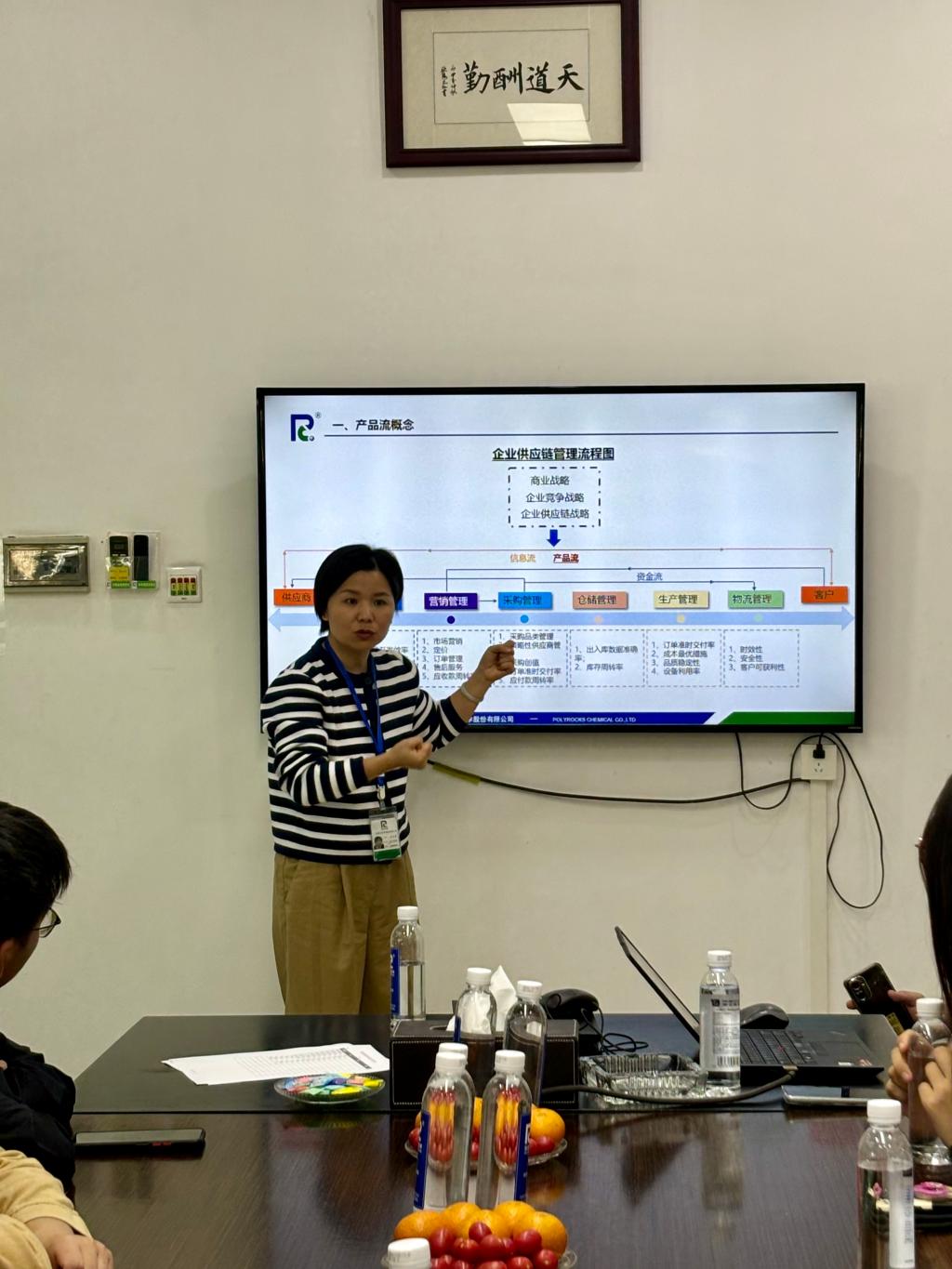 随后,曾垂甜总监以其丰富的行业经验和独到的见解,缓缓展开了一幅企业物流与供应链管理的宏伟画卷。他首先详细介绍了广东聚石化学股份有限公司的产品内部管理流程,从原材料采购到成品出库,每一步都蕴含着精细的规划与高效的执行,让在场的学生们深刻体会到,一个高效运作的物流系统是如何支撑起企业的快速发展。