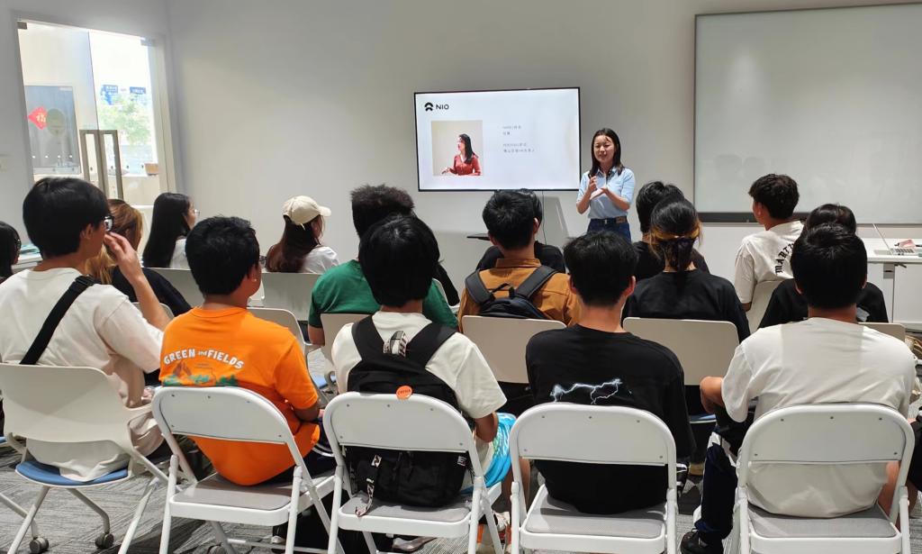 此次实践学习包括行业介绍、职业分享和自由参观三个环节。在行业介绍环节,蔚来佛山地区人力资源负责任露女士向同学们详细介绍了蔚来的企业愿景和发展历程,并对新能源行业的发展现状进行了深度讲解。作为下一个即将实现“弯道超车”的产业,中国智能汽车产业仍然拥有巨大的潜力,将继续成为大家就业的主要行业选择之一。
