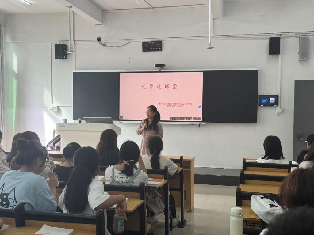 同期,物流管理与采购管理专业教研室专任教师利用第十教学周课间时间在各班级进行反诈宣传与教育工作,获得广大同学认可,取得良好效果。