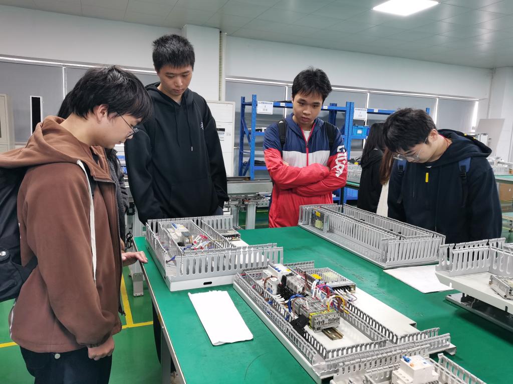 紧接着工作人员带领师生抵达先进的激光设备生产车间,从车间上层玻璃外墙通道,对车间总体进行全局观摩。接着进入车间内部,按照激光装备的生产流程逐一介绍,从来料检验、产中控制到OQC,余总亲自讲解每个生产的质控环节。现场师生收获颇丰,对于智能制造有了更深刻的理解。
