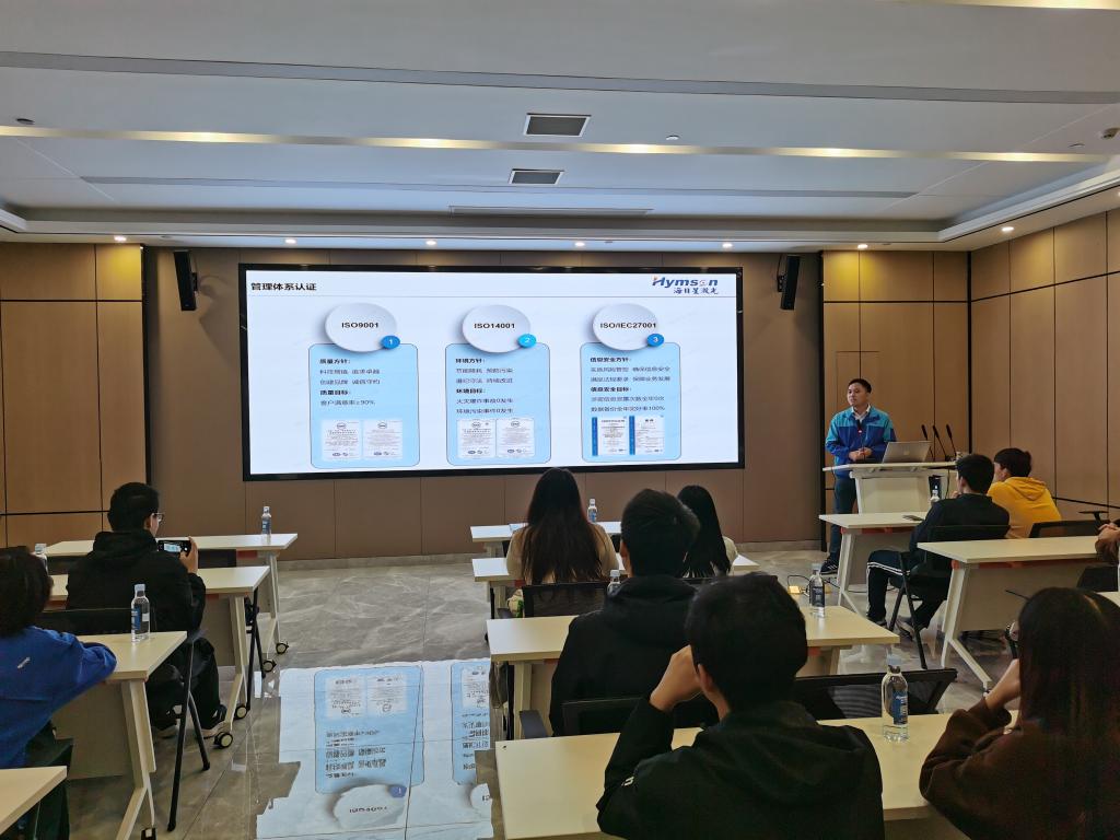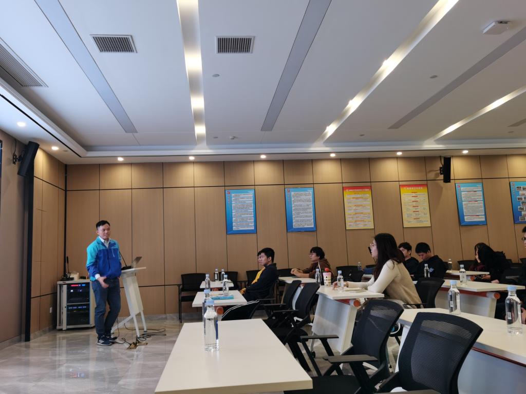 参观完生产现场,来到公司一楼会议室,余总为同学们带来一场高水平的质量管理讲座。分别从质量组织架构、质量体系建设、质量活动开展和质量改进等方面进行深入详细讲解。涉及内容有部门构成、岗位职责、质量方针、体系建设、资源配置、过程控制与检测的各种方法,以及管理评审和供应商质量管理等,理论知识融合企业现场分享,图文并茂,逻辑严密,这为锻炼学生的工科思维提供了很好的学习机会。在场学生纷纷发言,提出自己的思考观点,余总毫无保留地分享了他的质控经验和职业规划,以及对未来激光装备和智能制造的深刻观点。