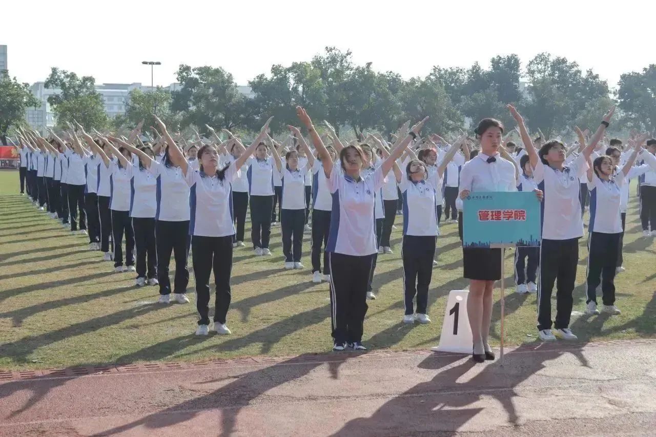 他们动作整齐划一,热情如阳光般热烈,青春活力肆意飞扬,激情四射燃动校园!让我们热情拥抱运动,一起向未来!管院的运动健儿们,请尽情挥洒你们的汗水吧!