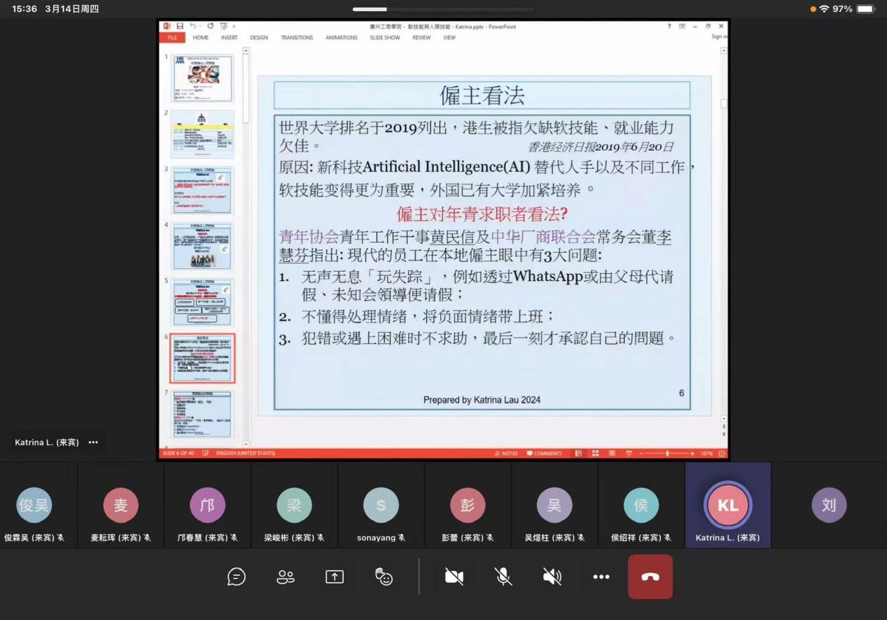 刘锦芳老师以其深厚的心理学背景和丰富的实践经验,为学生们带来了一场精彩纷呈的讲座。她不仅详细解析了软技能的概念,还通过生动的案例分析,让学生们深刻理解了在职场和日常生活中有效沟通的重要性。讲座中,刘老师强调了倾听、同理心、自我表达等关键软技能的培养,她认为这些技能对于建立和谐的人际关系至关重要。