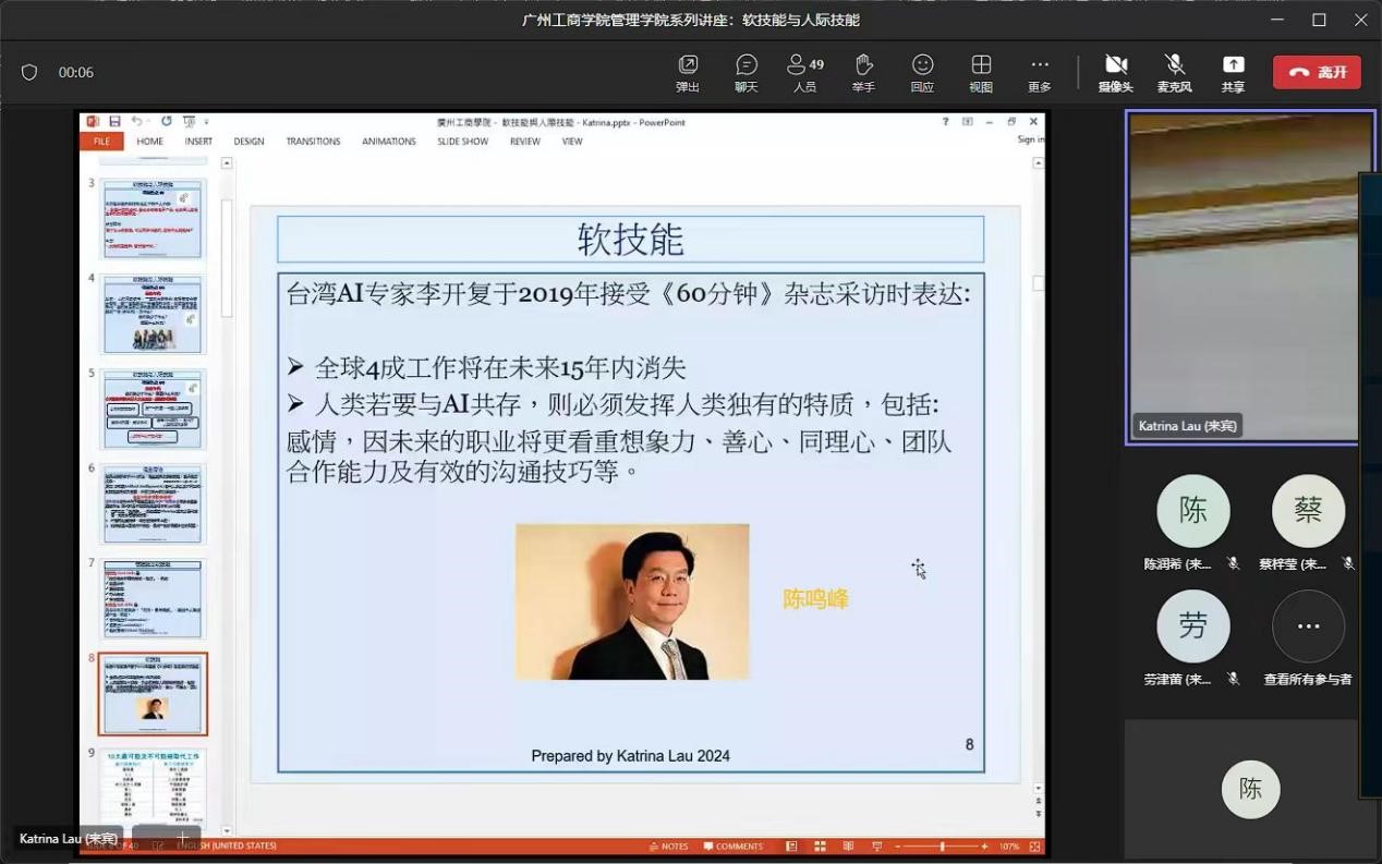 此次讲座是管理学院为提升学生的综合素质而举办的系列讲座之一。负责此次讲座的陈泽宇老师说道,随着社会的发展和职场竞争的加剧,软技能的培养已经成为教育的重要组成部分。学校希望通过此类讲座,帮助学生们在专业知识学习的同时,也能够注重自身软技能的提升,为他们未来的职业生涯打下坚实的基础。