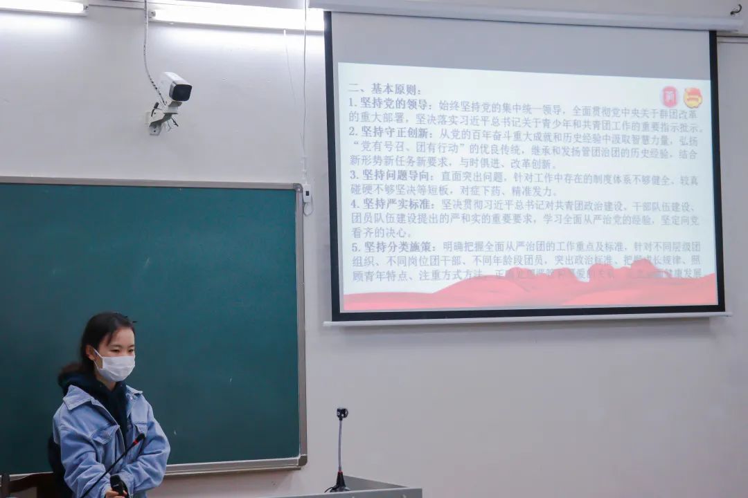 会议伊始,管理学院团委书记钟欣老师带领管理学院团委、学生会全体干部学习新时代全面从严治团实施纲要。随后,书记处、主席团各代表依次上台发言,强调学生干部要锚定保持和增强自身建设,加强党史学习教育,发挥学生干部的模范作用。