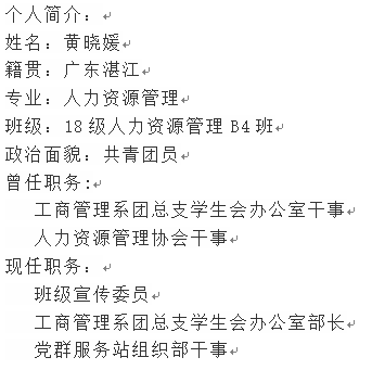 晓媛同学入学至今加入很多部门,但让她感受最深刻的是工商管理系团总支学生会办公室。她表示在这个部门既有欢欣愉悦,也有成长历练。师姐们的言传身教,不仅让她快速成长,学习到很多技能和经验,而且也让她明白了很多做人的道理。她说道:“和朋友们一起工作,一起完成一项项任务,很充实很忙,但我并不觉得累,因为和喜欢的人在一起做有意义的事,这份美好时光,待日后回忆起来,会觉得此时此刻的坚持和热情,终究是永不磨灭的。”
