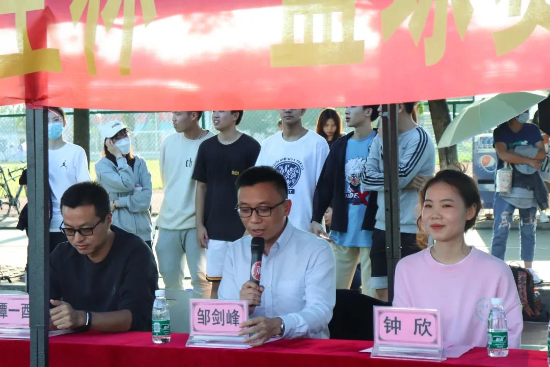【本网讯】为积极践行“以德为行,以学为上”的教育思想,鼓励同学们参加“五进”之“进体育场馆”的实践活动,加强校园体育文化建设,丰富同学们的课余生活。2021年10月18日下午四点,管理学院迎来了2021级“新生杯”篮球赛。本次开幕式邀请了管理学院副院长邹剑峰副教授,管理学院学工办主任谭一酉老师,管理学院团委书记钟欣老师,20级级长姚舜老师,21级级长宋琪老师,19级辅导员林枫老师,21级辅导员郑文凤老师,21级辅导员程权老师。