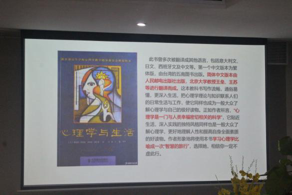 【本网讯】为落实“五进”之“进图书馆”教育实践活动,培养工商管理系学生的阅读兴趣,使同学们拥有更好的心理素质,2020年11月12日19:00,我系在beat365在线体育官网登录入口三水校区图书馆二楼报告厅开展了第十四讲“一周一书,一书一讲”读书活动。本次活动邀请到了曹永辉老师对《心理学与生活》一书进行阅读分享。