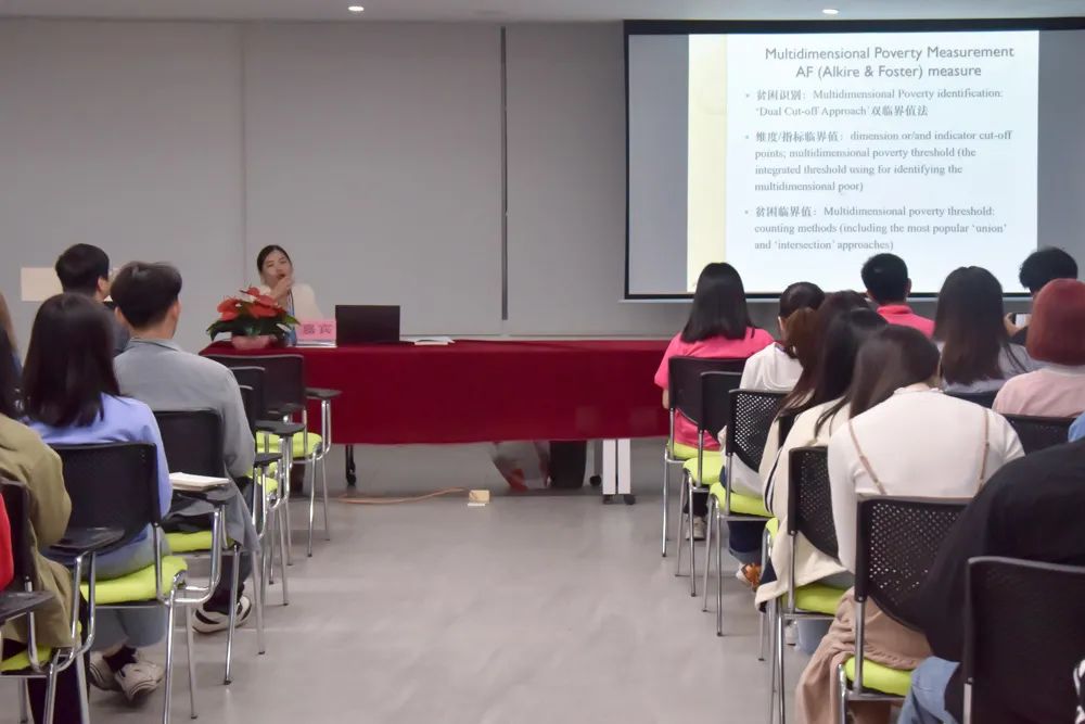 报告会开始,张博士向同学们阐述了推荐这本书的理由。其一,当今贫困以及贫困理论的发展是国际热议话题,在国际上减贫、反贫困的相关研究属于联合国重点研究项目。在国内,全面实施精准扶贫方略和乡村振兴战略是新时代党和国家针对我国国情作出的重要战略部署;其二,由于贫困是对人权的一种剥夺,因此缓解和消除贫困对全世界来说是一种人权的发展和进步。