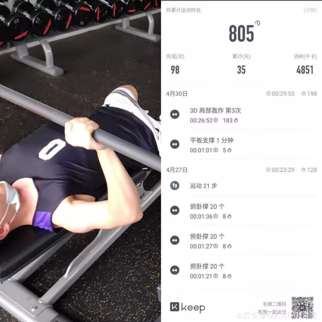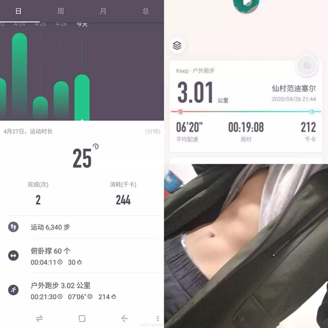 很高兴能够参加这次的活动,并且我觉得它来得恰到好处。起初这场疫情,让我心安理得地在家吃好睡好,等我想要改变时,我已经安逸太久了,一时难以改变。而这次的活动,开头前几天是挺难的,有时我就想着少打卡一天没什么的,可我又明白,这是努力就有成果的事,并且有益于我自身的。渐渐地我反而很期待每天打开keep,运动完满身是汗却比之前精神不少,打卡对我来说是个很有仪式感的事。总之,很感谢有这么个活动,工作人员也辛苦了!