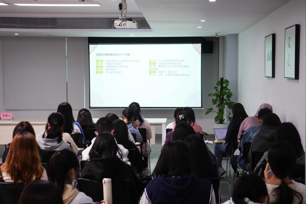 讲座开始,张永训老师通过一个小故事引出她推荐本书的理由,并对本书作者进行了简单的介绍。接着,老师将书本分成五个部分进行解读,第一个部分是共情的定义;第二部分是如何去表达共情;第三部分是如何拥有共情他人的能力;第四部分是如何通过共情去接纳自己,抚慰自己受伤的心灵;第五部分是书本的总结。为了让大家合理利用共情,老师阐释了共情的定义、共情与同情的不同和共情具有两面性,并提出了10个技巧帮助同学们共同抵御共情阴暗面的影响。最后,老师给同学们分享了表达共情的步骤以及拥有共情他人能力的做法:1.诚实:清楚地看待自己,准确地理解他人。2.谦逊:既知道自己是谁,又知道自己不是谁。3.接纳:我没那么好,你也没那么好。4.宽容:透过表层深度理解人性。5.感恩:一种体验世界、与世界互动的方式。6.信念:坚信人们心中基本的善良。7.希望:事情会一天天好起来。8.宽恕:原谅自己,就原谅了整个世界。