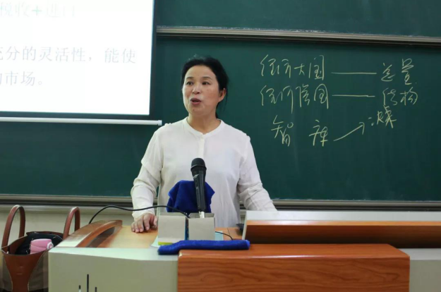 讲座中,袁艺教授以“前轮驱动,带动后轮驱动”为例子向学生们解释什么是供给侧结构性改革。接着,袁艺教授提到经济发展中有两股基本力量发挥作用,分别是总量和结构并表明供给侧结构性改革的涵义在于强国。让学生知道供给侧结构性改革对于我们国家的经济发展是一件很重要的事情。