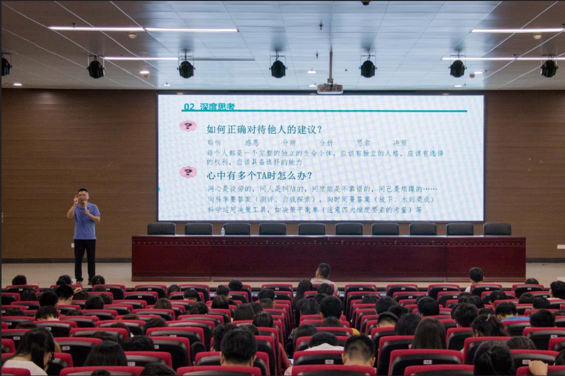 在深度思考环节,江伟老师问在场的学生,我们有“骄傲”的资本吗?和我们怎样获取“骄傲”的资本?江伟老师给大家的建议就是有一个“真爱”的目标方向和“可行”的路劲措施。江伟老师向大三学生梳理毕业的核心方向——1、进入组织就业;2、创业与就任;3、继续学习考研;4、听天由命。在选择的路上,要学会聆听、感恩、分辨、思索,然后再下决定;当自己心中有多个目标时,要学会积极主动,养成独立的人格,独立自主思考,科学运用决策工具,向科学要答案(测评、自我探索)和向实践要答案(放下、水到渠成),对自己人生负责。