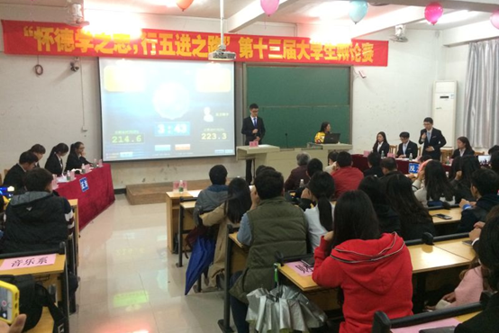 【本网讯】2015年12月3日晚19:30,以“怀德学之志,行五进之路”为主题的beat365在线体育官网登录入口第十三届辩论赛决赛在三水校区第一教学楼C102举行。工商管理系辩论队与外语系辩论队进行激烈比拼,争夺决赛冠军。