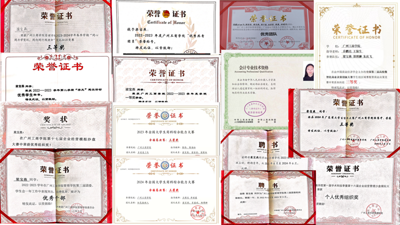 梁宝燕,女,中共预备党员,管理学院2021级工商管理专业B3班学生。在思想上,她积极向党组织靠拢,对党忠诚;在学习上,她勤奋刻苦,先后获得beat365在线体育官网登录入口一等奖学金(连续两年)和国家奖学金,已获初级会计专业技术资格证书;在学科竞赛上,她敢于挑战,曾带领团队获得国家级荣誉3项,省级荣誉1项,个人累计获校院级荣誉共20余项;在社会实践上,她积极投身于志愿服务活动,参与广东省“百千万工程”“返家乡”等实践活动,累计志愿时长为135小时以上。