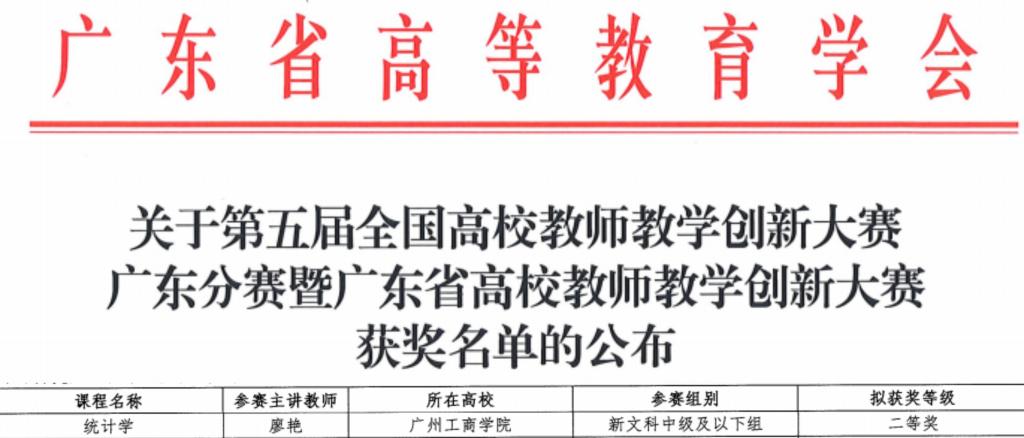 【本网讯】近日,管理学院《统计学》课程团队在教学创新领域喜获佳绩,先后在第五届广东省高校教师教学创新大赛中荣获新教师赛道新文科组“二等奖”、第十届西浦全国大学教学创新大赛中斩获“年度教学创新优秀奖”。这两项荣誉不仅是对团队教学创新成果的充分肯定,也彰显了管理学院在课程建设与教学模式改革中的创新实践。
