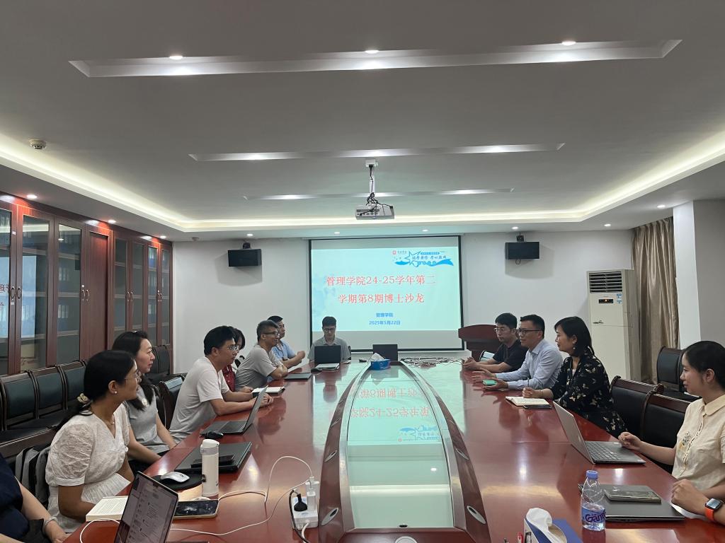 【本网讯】2025年5月22日,管理学院成功举办2024-2025学年第二学期第8期博士沙龙。本次活动由黄学斌博士和冯俊鹏博士担任主讲,管理学院邹剑峰副院长主持,全体科研岗博士、教学科研岗及教学岗博士踊跃参与,同时邀请到深圳市薪智企业管理咨询有限公司张薪顾问出席。