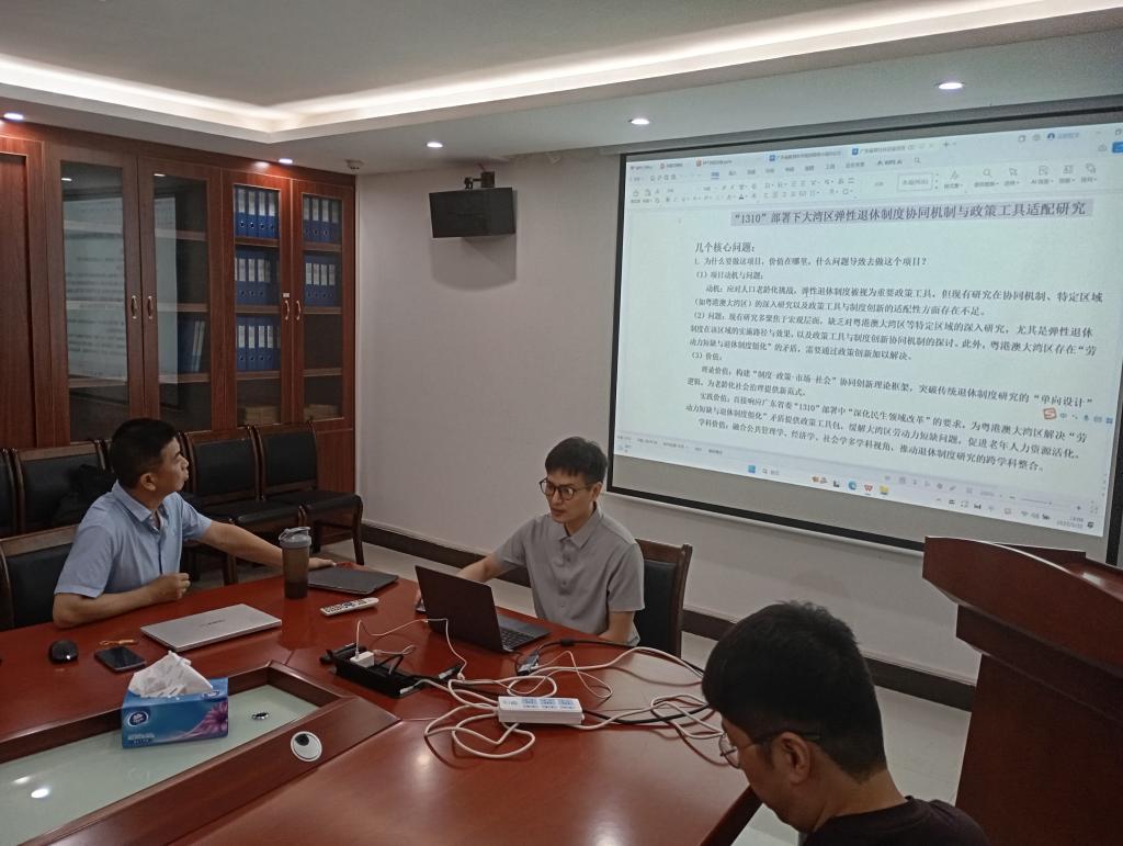 在学术分享环节,黄学斌博士带来《数智化转型背景下应用型本科院校产教融合“双循环”创新路径研究》和《“1310”部署下大湾区弹性退休制度协同机制与政策工具适配研究》两项课题分享。他聚焦新质生产力对应用型本科教育的变革需求,以及大湾区人口老龄化下弹性退休制度的研究空白,前者构建“调研-诊断-优化”闭环与政校行企协同模型,旨在强化人才培养与区域经济的联动效应;后者通过理论建模与政策仿真,为破解劳动力短缺与退休制度僵化提供跨学科解决方案,开拓政策研究的实践维度。