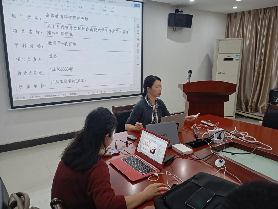 苏玲博士就其获得“2025年度广东省教育科学规划项目(高等教育专项)”立项的课题——《基于自我领导力的民办高校大学生终身学习能力建构机制研究》展开经验交流。她从选题立意、问题聚焦、框架搭建、内容构建到申报书撰写等多个环节,系统分享了课题设计与申报的心得体会。随后,苏博士与在场教师围绕课题成果预期、成果形式及研究重难点等议题展开深入探讨。现场交流气氛热烈,多位博士表示深受启发,充分展现了管理学院严谨务实、积极进取的学术氛围。