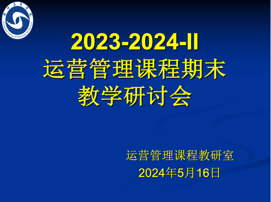 【本网讯】2024年5月16日,运营管理课程教学团队开展了2023-2024第二学期5月份教研活动,教研主题聚焦即将到来的期末考试工作,本次课程教研室教研活动由柳颖副教授主持,课程组成员刘吉松、朱靖、桑晓明、曾灵芝、李...