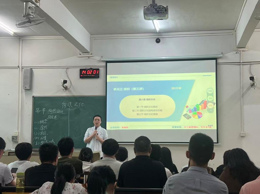 【本讯网】2025年10月30日14:00-16:00,工商管理教研室全体教师在教I-D204开展《管理学》公开课观摩与评课活动。本次活动由单丽薇主任主持,梁娅青老师主讲《管理学》第八章“组织文化”内容,旨在通过课堂展示与集体研讨,提升教师教学水平,深化课程思政与教学创新的融合。公开课伊始,梁娅青老师以清晰的教学逻辑展开授课。在“知识回顾”环节,她通过结构化的PPT呈现,带领学生回顾“人员配备”模块的核心知识点,包括人员...