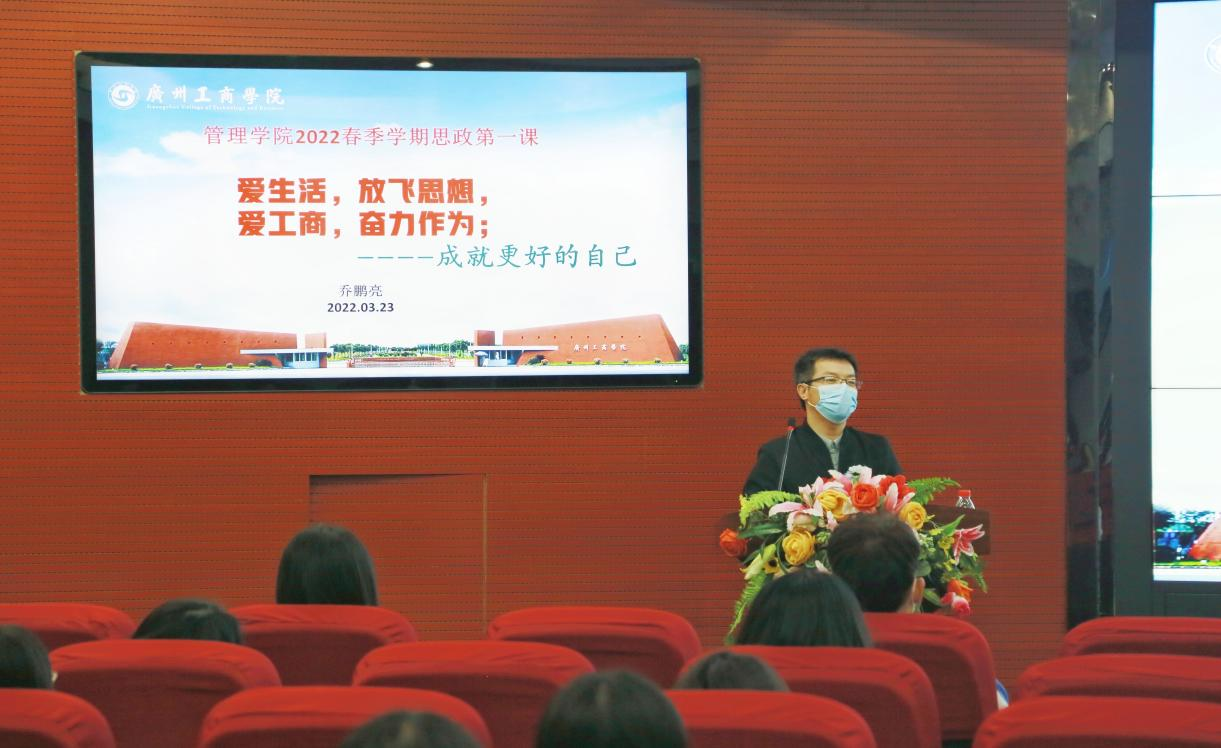 【本网讯】为了深入学习领会党的十九届六中全会精神,教育引导广大青少年学生深刻认识总结党的百年奋斗重大成就和历史经验的重大意义,不断增强做中国人的志气、骨气、底气,不断坚定紧跟党走中国特色社会主义道路的信心、决心,以优异成绩迎接党的二十大胜利召开。管理学院于2022年3月23日在办公楼322开展2022年春季学期“思政第一课”讲座。晚上七点,以“爱生活,放飞思想,爱工商,奋力作为——成就更好的自己”为主题的“...