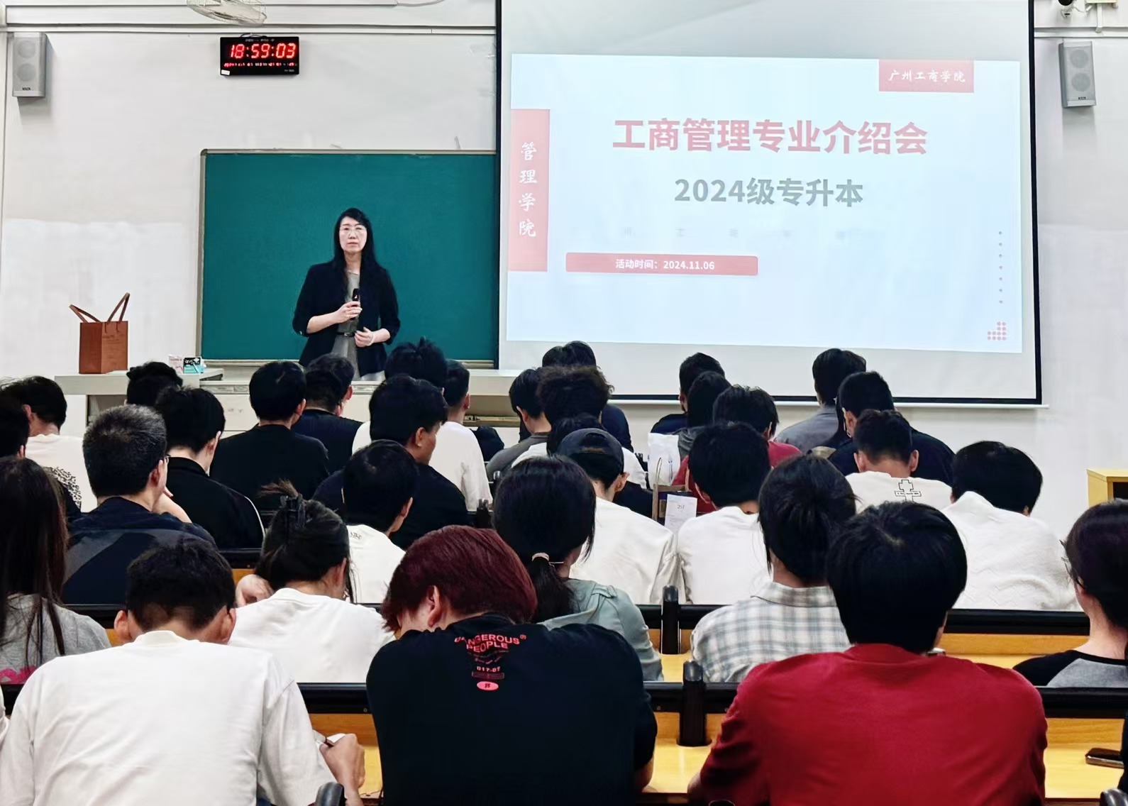 【本网讯】2024年11月6日,管理学院面向2024级专升本新生召开了工商管理专业介绍会,此次会议由工商管理教研室主任单丽薇教授主持,旨在帮助新生更好地了解工商管理专业的发展前景及培养方案,为新生的学习规划指明方向。(工商管理专业召开2024级专升本学生专业介绍会)单主任首先介绍了本次会议的流程。她强调,专业的发展离不开每一位师生的共同努力,更离不开学校和社会各界的广泛支持。正是这些因素的共同作用,使得工商管...