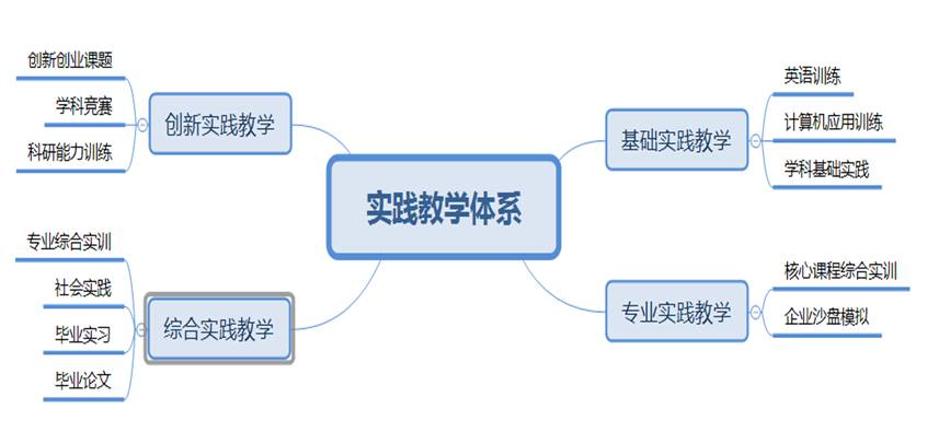 根据社会需求+应用型人才培养标准的改革思路,实训课程分成四个梯度按照时间维度和课程性质逐层展开,四个梯度分别为: