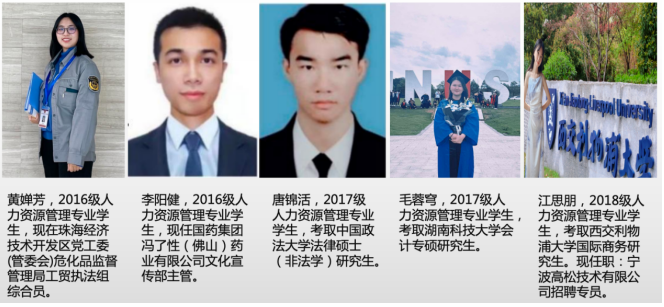 近5年,本专业学子在就业及考研升学方面取得了令人瞩目的优异成绩。在就业方面,不乏学子被政府机关、事业单位、国有企业及行业知名企业就职,如区党工委、保利、国药、华为等。在考研升学方面,众多同学成功被国内外知名高校录取,境内升学包括中国政法大学、深圳大学、南京理工大学、东北师范大学、上海海洋大学等“双一流”或国内知名院校,境外升学则覆盖悉尼大学、昆士兰大学、新南威尔士大学、诺丁汉大学、蒙纳士大学、澳门科技大学等世界名校。录取专业涵盖人力资源管理、工商管理、法律、社会工作、管理学、国际商务、项目管理、应用心理等多个领域,充分展现了beat365学生扎实的学术功底、多元的发展方向和卓越的全球竞争力。