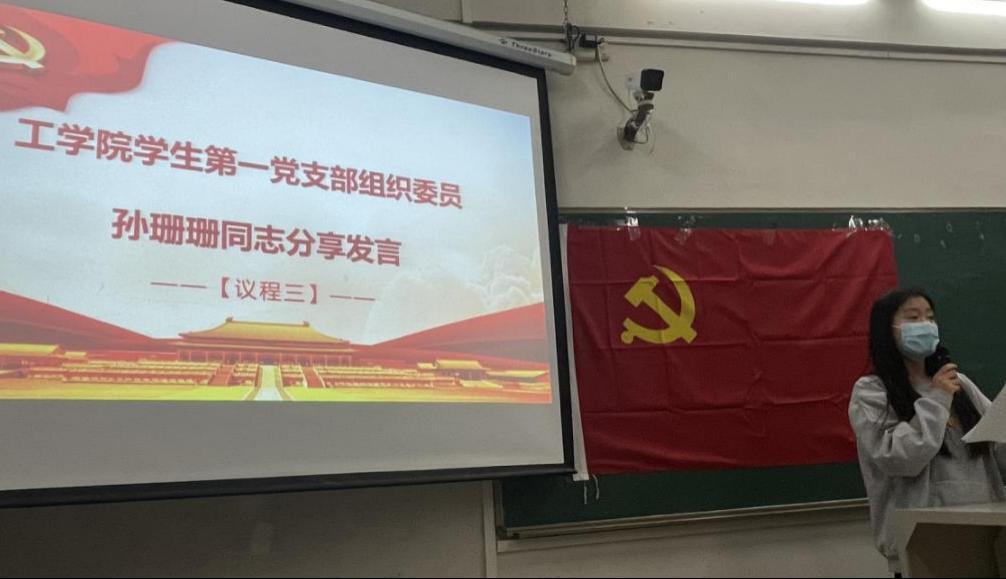 【本网讯】为深刻领悟百年大党不朽精神力量,坚定马克思主义信仰和社会主义、共产主义信念,贯彻落实党史学习教育的部署要求,2021年11月10日,工学院学生第一、第四党支部在第一教学楼A401开展《习近平新时代中国特色社会主义思想学习问答》学习分享会。出席本次会议的有工学院学生第一党支部书记钟伟同志、工学院学生第四党支部书记胡伟芳同志、支部委员、教师党员和学生党员。本次会议由工学院学生第一党支部宣传委员窦琛莹同志主持。